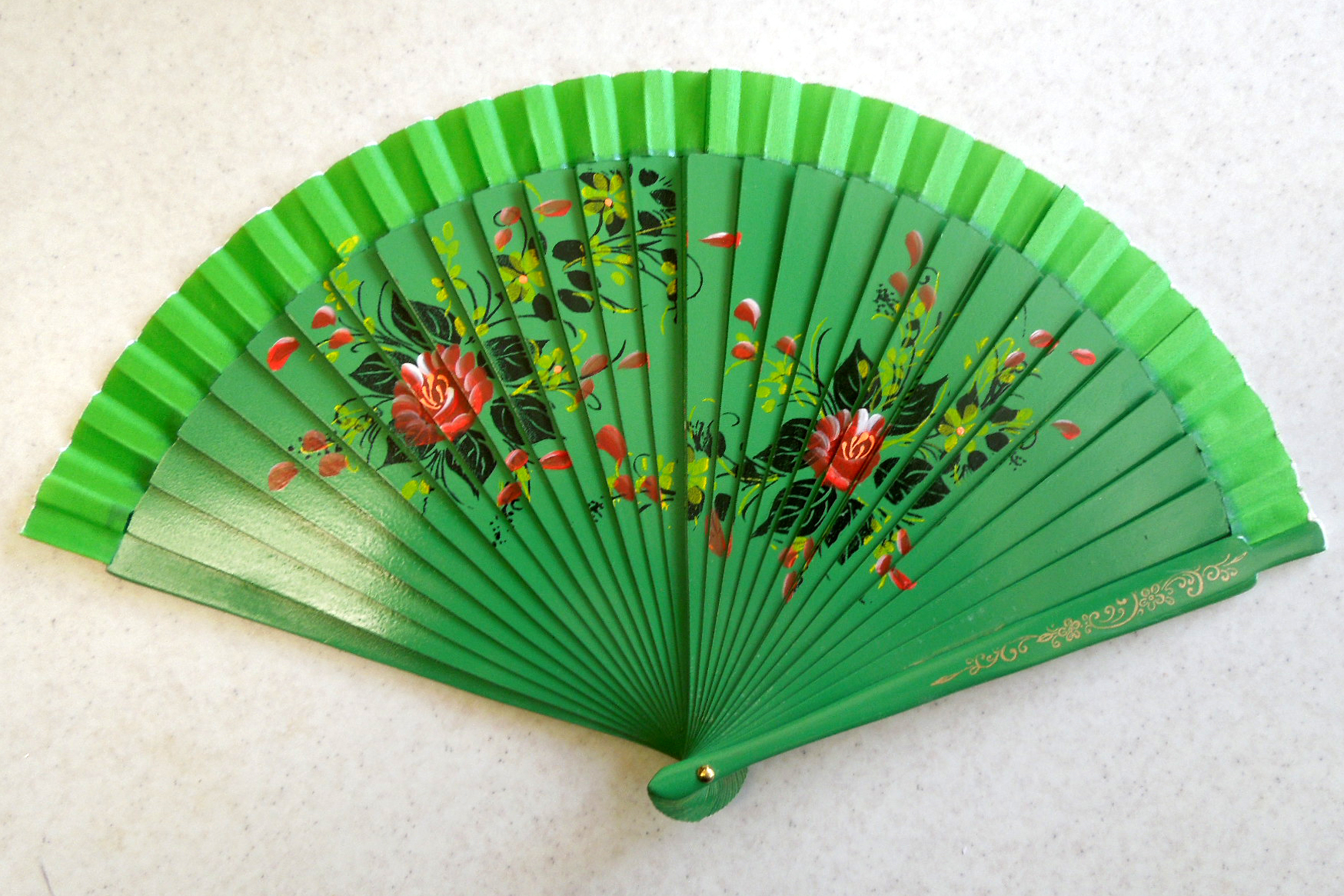 - Lakovaný vějíř s květinovým motivem